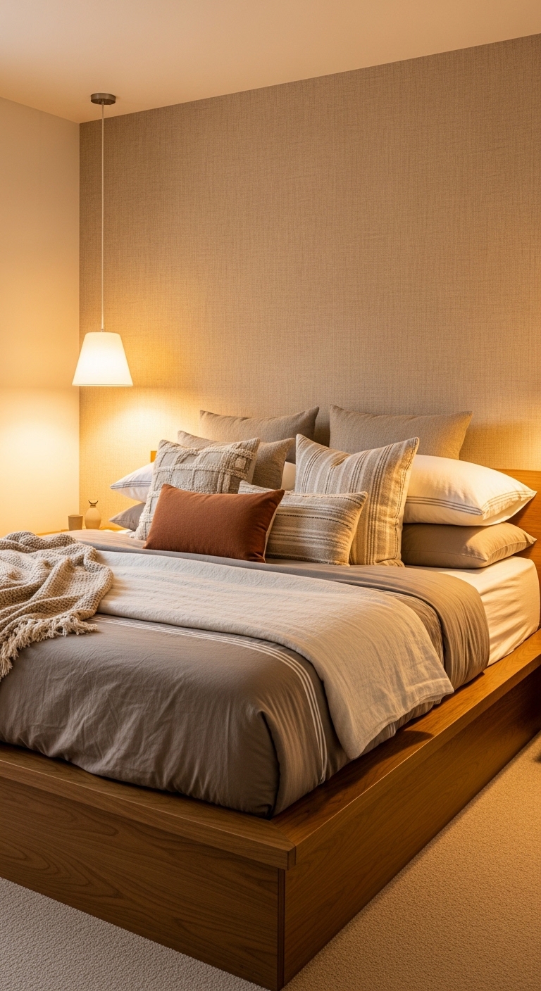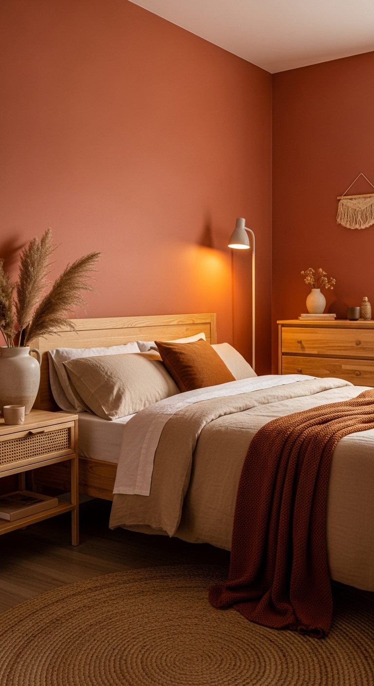 You don’t have to paint every wall to bring this palette into your room. You can introduce it through bedding, throw pillows, rugs, curtains, and decorative accessories — layering tones gradually until the room feels cohesive and warm.
