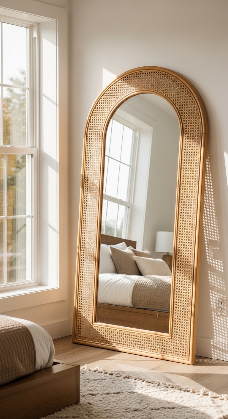 - Lean a full-length mirror against the wall beside or opposite a window — it reflects natural light and makes the room glow