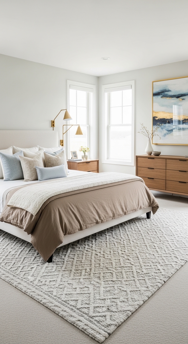 - Use area rugs to anchor furniture groupings and define zones within a larger room