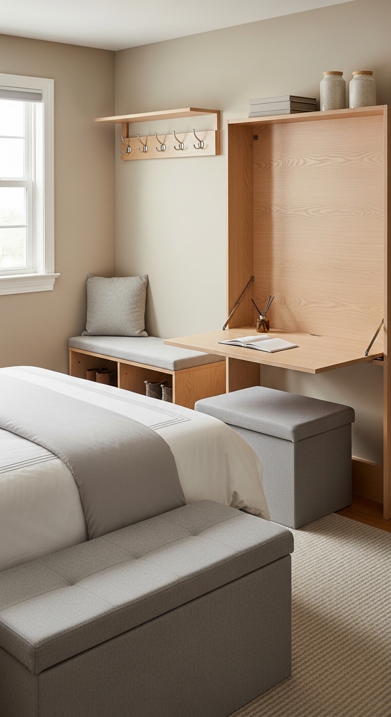 This one move eliminates the need for a separate piece of furniture entirely, which in a small bedroom is always a win.