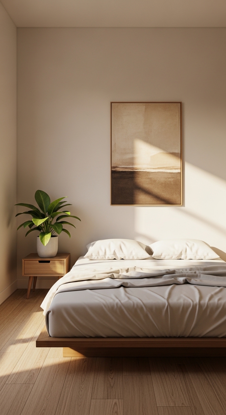 A lot of people make the mistake of painting small rooms stark white because they think it will open things up. It does help, but it can also feel cold and clinical. Warm neutrals give you that same spaciousness with an added layer of coziness — which is exactly what a bedroom should feel like.