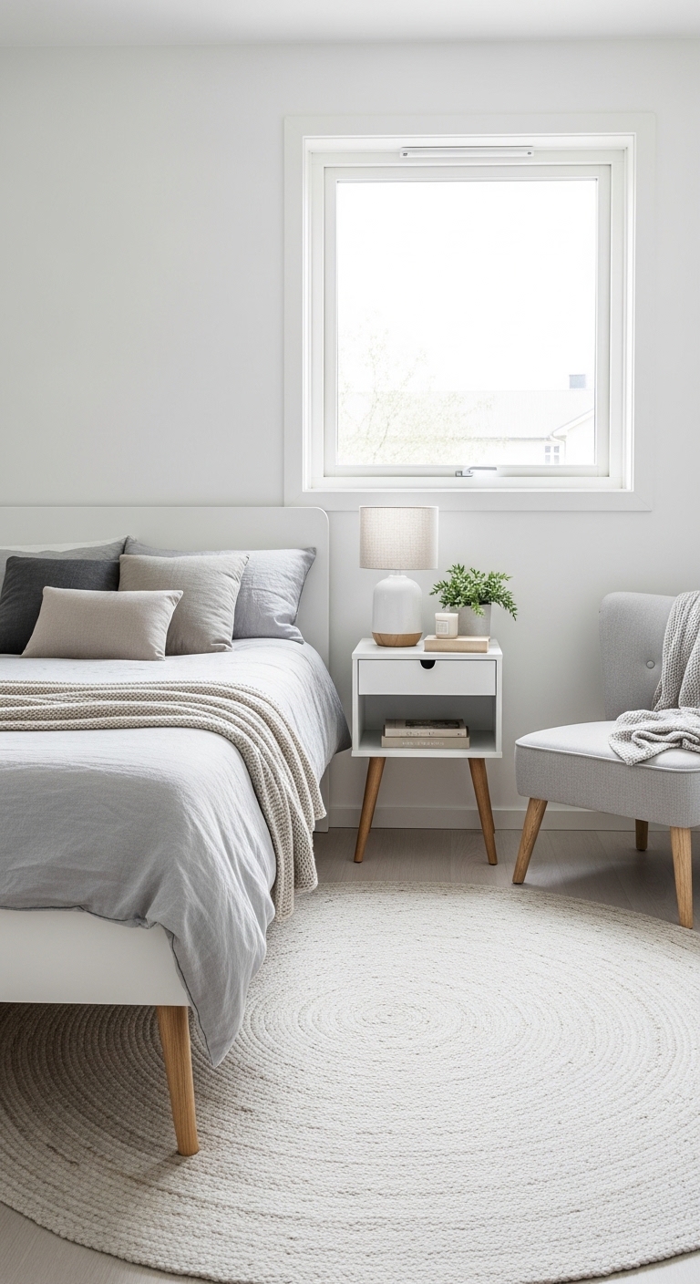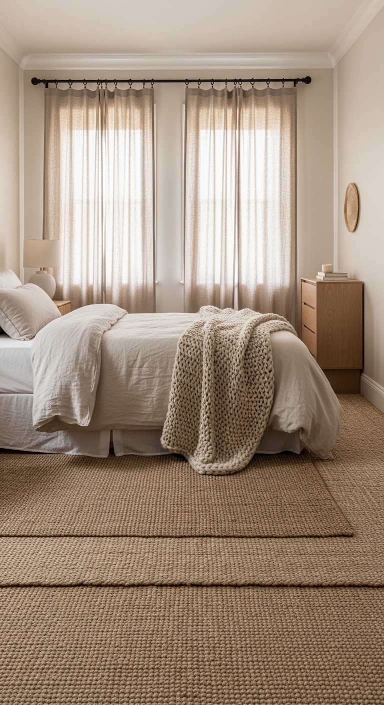 Texture is your friend in small spaces because it adds richness and depth without adding physical bulk. Layering rugs and textiles is one of the easiest ways to make a small bedroom feel curated, cozy, and visually interesting — without adding a single piece of furniture.