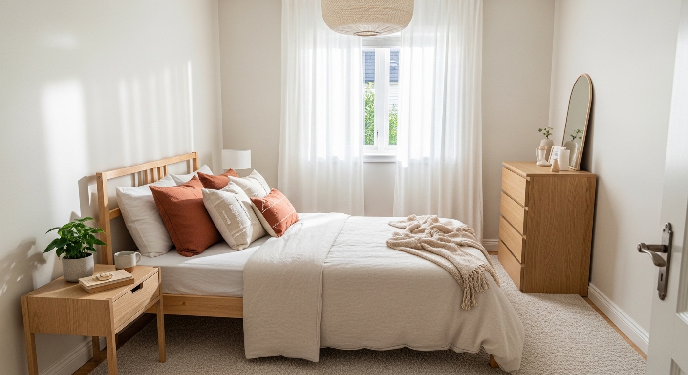 The trick is understanding three things: function, flow, and visual tricks. Once you know how to work those three levers, your bedroom stops feeling cramped and starts feeling curated.