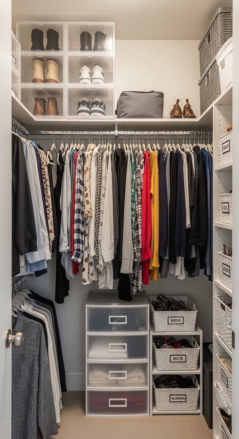 A closet organization system — even a simple DIY one — can double or triple your actual storage capacity: