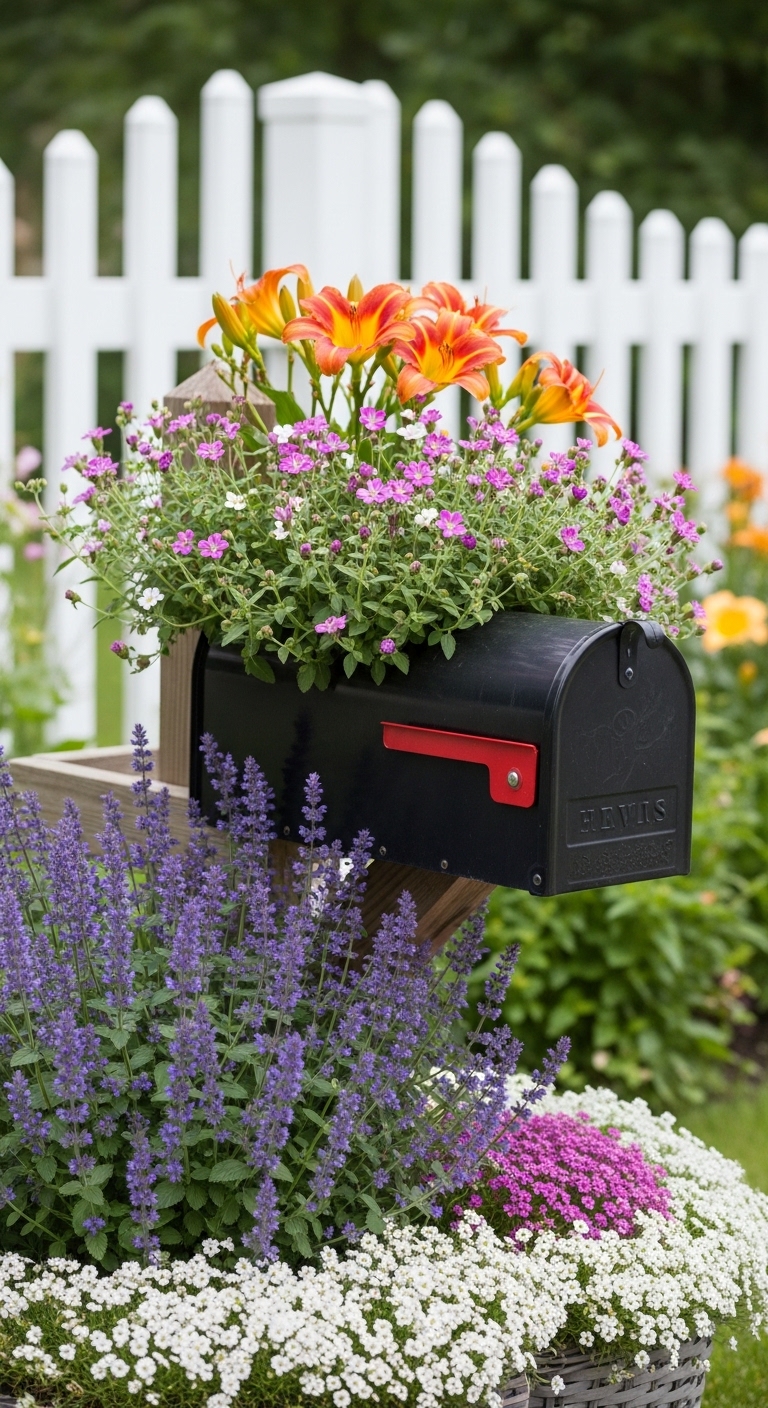 Plant low-growing perennials and annuals around the mailbox post — catmint, daylilies, and sweet alyssum work beautifully together. Paint your mailbox to match your front door for a cohesive, intentional look. It’s a tiny detail that tells people you care about every corner of your property.
