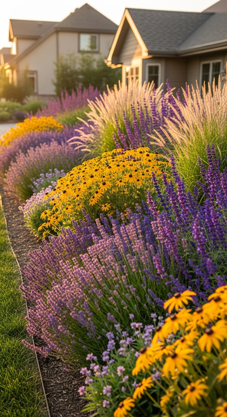 Think black-eyed Susans, lavender, salvia, and ornamental grasses together. Mix textures and bloom times so something is always in color from spring through fall. This approach is what landscape designers call a “continuous color strategy,” and it works beautifully in almost any climate.